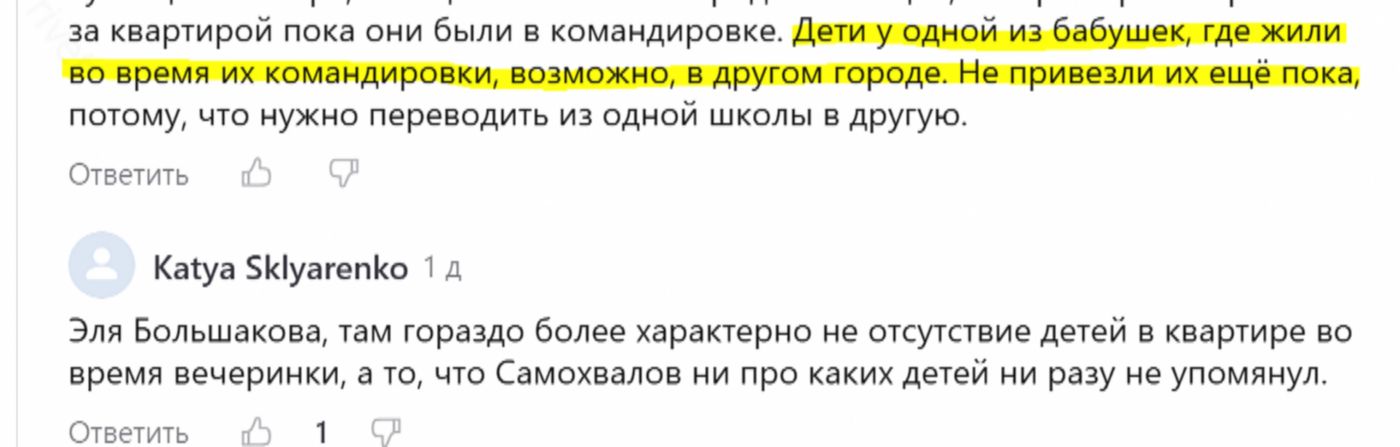 Конечно, мои замечательные читатели обратили на это внимание. Предположений на предмет того, есть ли дети у четы Самохваловых и если есть, то где они, было высказано немало. Вот некоторые из них: