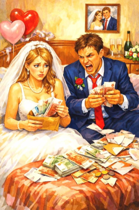 — Он… он считал деньги, — начала она, и новая волна слёз подступила к горлу. — Они с матерью считали, сколько собрали в конвертах, и были недовольны…