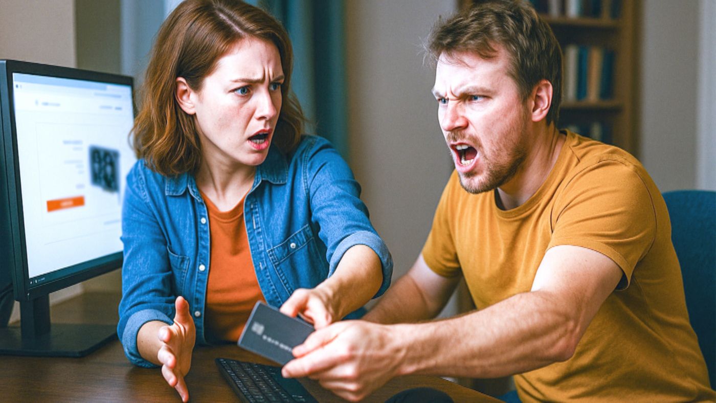 — Деньги общие! Я могу их тратить так, как захочу! — заявил он, защищая карту от ее попыток отобрать.