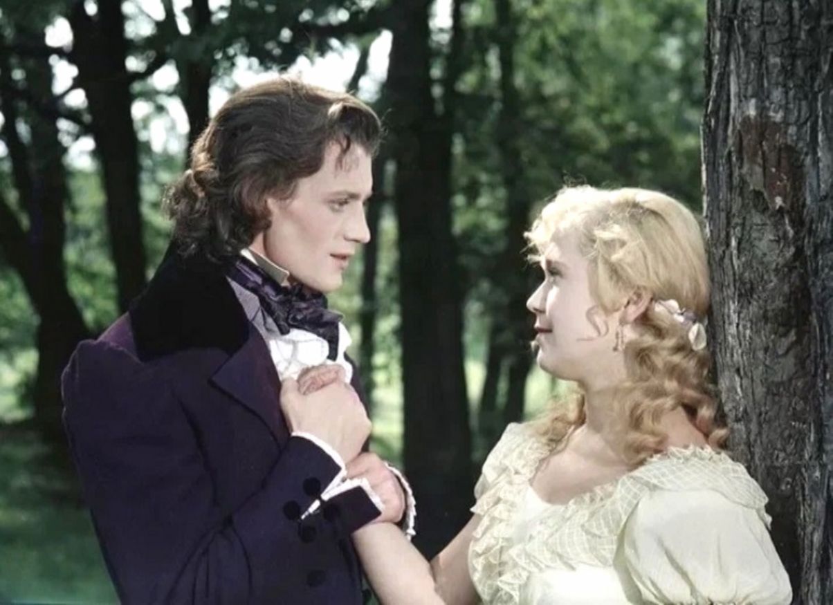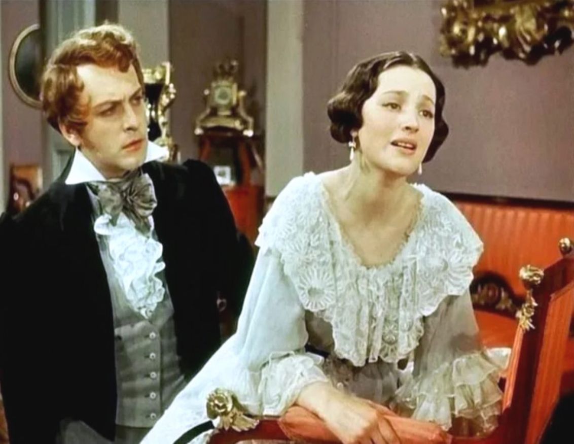 Давайте вспомним дивный фильм-оперу «Евгений Онегин» (1958) ленфильмовца Романа Тихомирова. Здесь прекрасно всё – красота актёров и голоса исполнителей, погода и природа, платья и фраки.