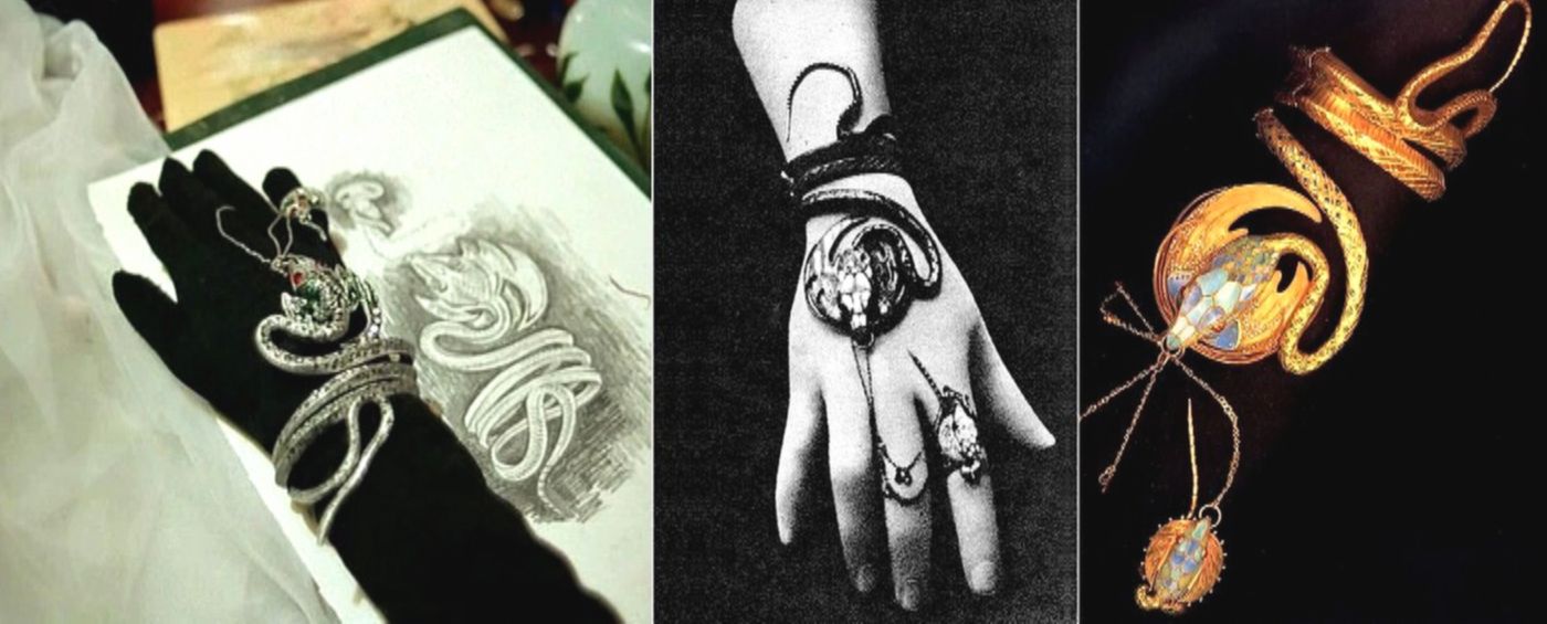 Все эти картины Жана Дельвиля и других мистиков Серебряного Века, штуки в стиле Жоржа Фуке и флаконы а-ля Рене Лалик, платья в духе Мариано Фортуни, бездонные очи, как у звёзд немого кино, а фоном – тревожно-пугающие мотивы Сергея Курёхина, пожалуй, самого изысканного композитора 1980-х годов.