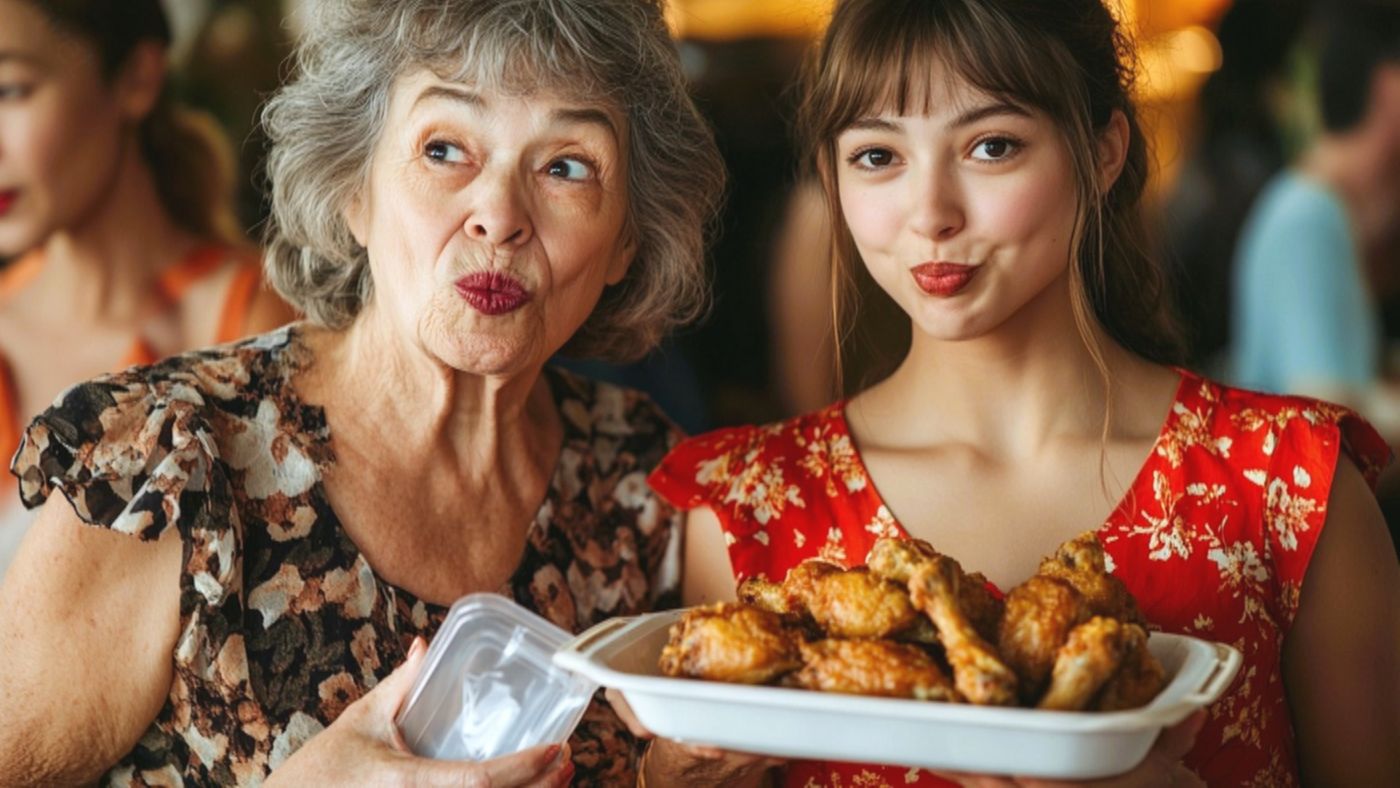 Людмила Петровна стояла у стола, склонившись над блюдом с оливье. В её руках была большая ложка, которой она методично, почти хирургически точно, перекладывала салат в прозрачный пластиковый контейнер. Рядом, у подоконника, Наталья сосредоточенно перебирала канапе на подносе, откладывая в сторону те, что с сёмгой.