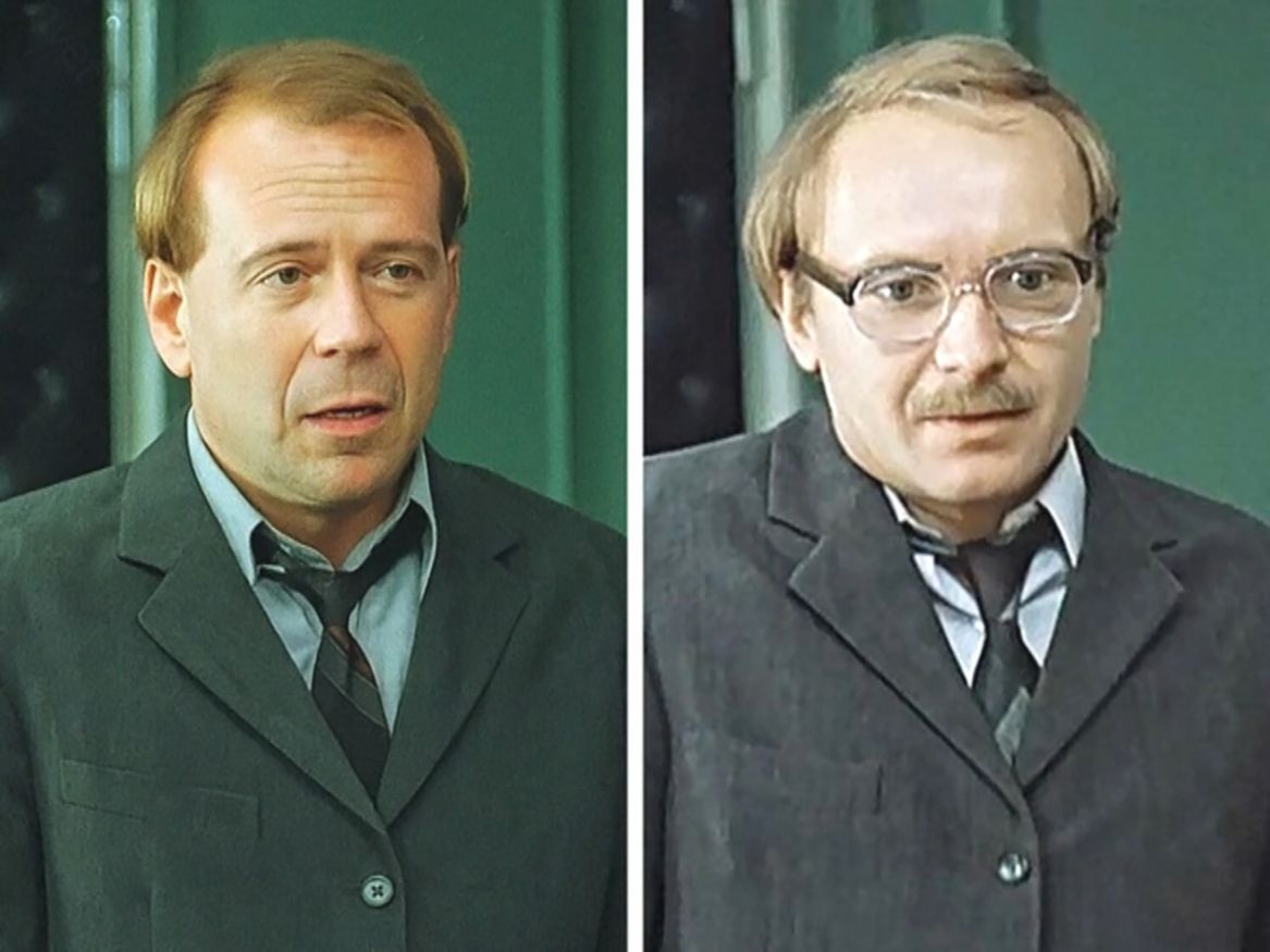 - Анатолий Ефремович – Андрей Мягков и Брюс Уиллис («Служебный роман»)