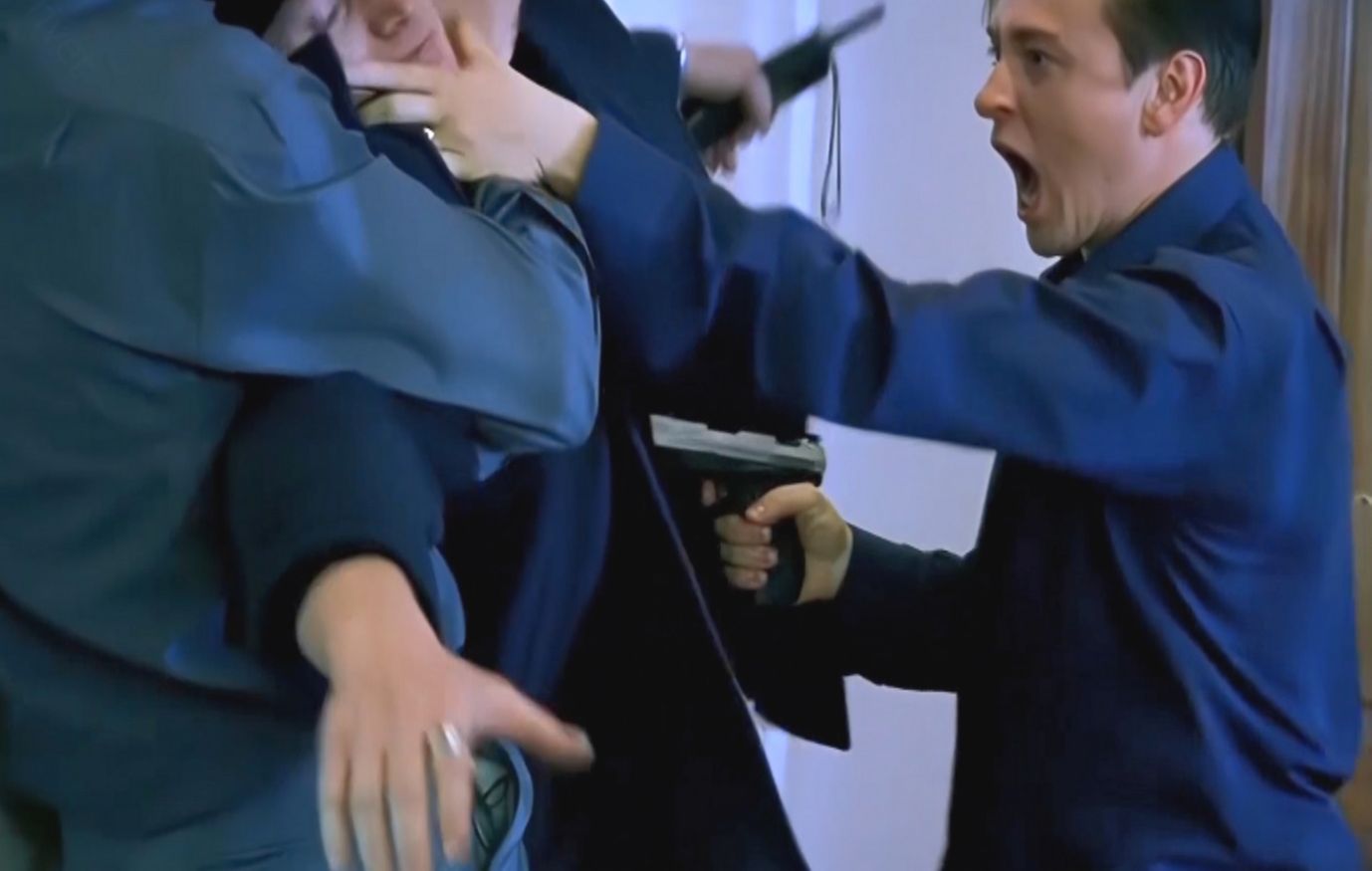И когда Пчела находился под подозрением из-за покушения на Фила, Оля вбежала к Саше и начала оскорблять мужа, имея в виду, что Витя не при делах. Между супругами возникла драка. Макс бросился их разнимать, и тогда Саша схватил пистолет, приставил его к животу Макса и обозвал его нехорошим словом.