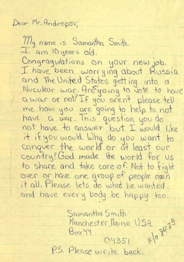 Историю американской девочки из штата Мэн, которая в возрасте десяти лет написала письмо главе Советского Союза, а через полгода летом 1983-го приехала в Москву вместе со своими родителями по приглашению Андропова, знают, наверное, все.