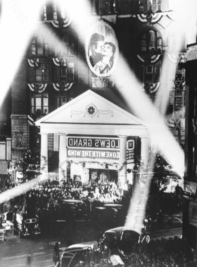 В 1939 году на экраны вышел фильм «Унесенные ветром», и это был совершенный триумф. Только на премьеру вокруг кинотеатра в Атланте собрались 300 000 человек. Естественно, старый кинотеатр не мог вместить всех желающих, но люди хотели хотя бы увидеть, как прибывают звезды, и быть рядом с местом, где вершится история.