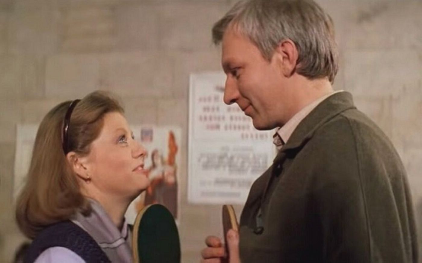 Нам дают понять, что герои теперь навеки вместе, тогда как реальные Геночки будут ещё лет десять играть и пинг-понг и произносить неуклюжие комплименты. Такие тихушники вообще не женятся – судя по его ухоженности, он живёт с мамой, а эти «мамины пирожочки» вообще не способны к жизни в браке – им всё будет казаться, что у мамы борщ лучше, а связанные носочки – мягче. А потому не следует и начинать.