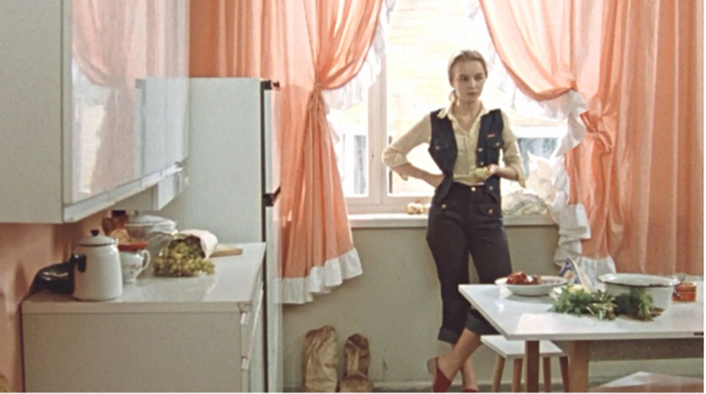 Квартира Катерины Тихомировой представляет собой некое переходное состояние от статуса рядового советского гражданина к статусу элиты. В её квартире много обычных вещей, но имеются и статусные, дорогие и дефицитные. Это пока она директорствует только пару месяцев и ещё не использовала все открывшиеся возможности своего положения.