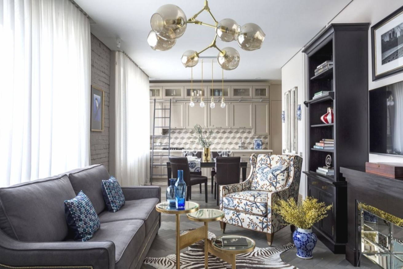 Но самое главное — автор проекта снёс большую часть перегородок, объединив обе комнаты с кухней и превратив двушку в современную уютную студию. Вот так выглядит эта квартира сейчас: