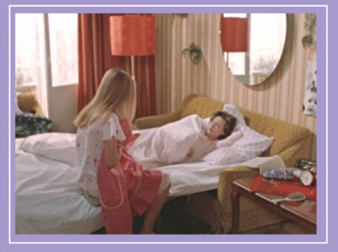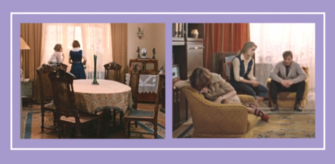 Внимание на ковер на полу. Внимательные зрители могли отметить, что эту прелесть нам в фильме показали, но в другом доме. Точно такой же «палас» красовался в квартире профессора Тихомирова. Видимо дядюшка оставил этот шикарный ковер своей племяннице в наследство.