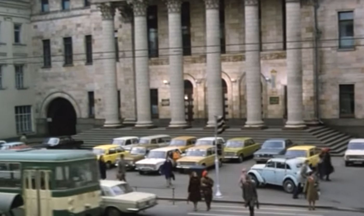 Вообще, судя по всему, кроме обозначенных владельцев, герой Георгия Буркова «променял» свой дом на подержанный «ЗАЗ 968». А вальяжный Павел Константинович Смирновский в лице блистательного актёра Леонида Маркова, оставил на парковке свою чёрную «Волгу ГАЗ 24». Кстати, рядом с ним, чуть правее остальных, расположился и красный «Мерседес» богатой «рыночной» директрисы.