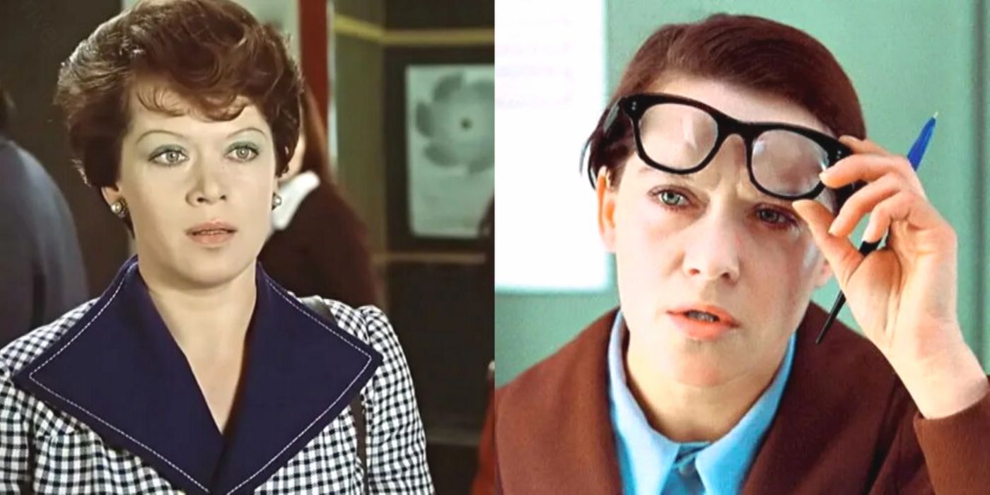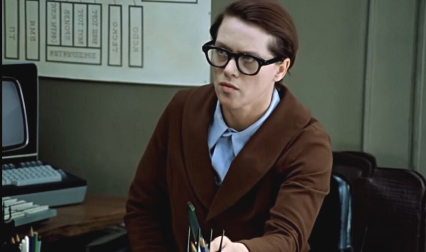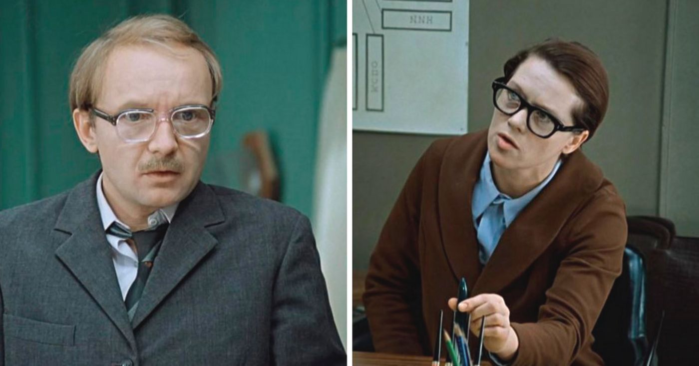 Странная метаморфоза, согласны? Уж Людмила Прокофьевна могла позволить себе красивую импортную оправу, и даже не одну. Почему же создатели фильма решили, что ей надо снять очки?