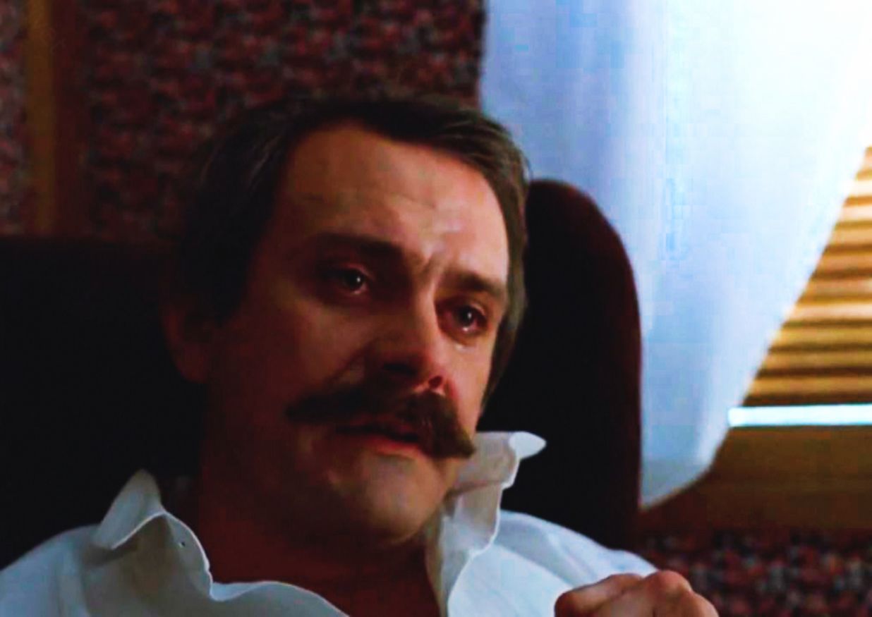 Почему же он рыдал, объясняясь с Ларисой? А всё потому же — он совершил немыслимое, самое гадкое, что мог совершить. По фильму он добился близости от Ларисы, и теперь ему надлежало её бросить — уничтожить её. Чувствуете величие момента? Он на самом пике эмоций.