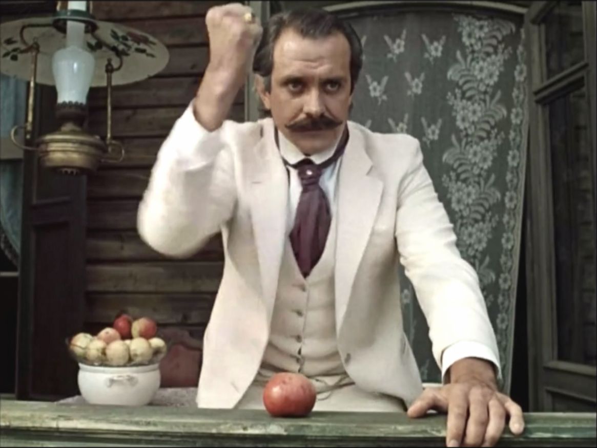 Помните, выше я писала, что есть люди, рождённые уничтожать. Помните, с каким наслаждением, с каким чувством собственной значимости он так театрально размозжил яблоко? Это было послание Карандышеву — «я тебя уничтожу».