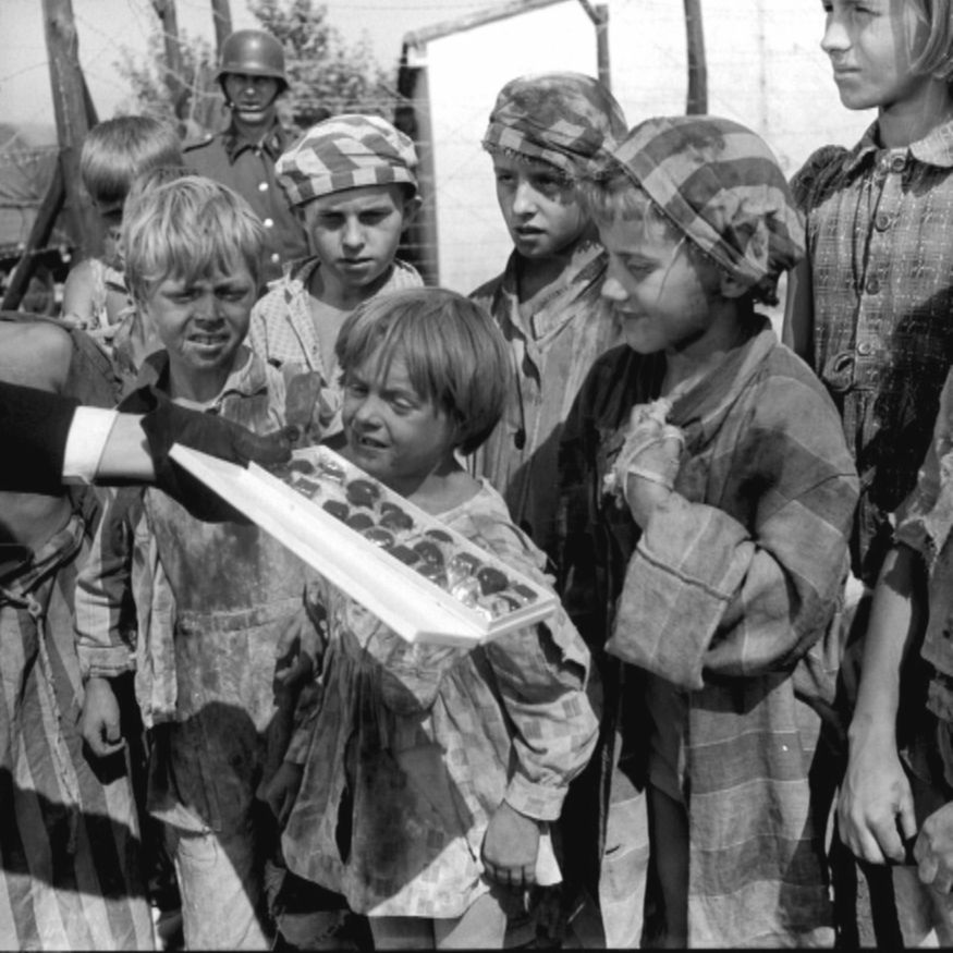 Они выучены быть «правильными» и говорить людям в форме только то, что те требуют. Один мальчик говорит: «Меня в газовую не надо – я могу ещё давать кровь». Девочка жалуется: «Мою пайку крысы съели, вот кровь и не пошла». Третий ребёнок сообщает, что назначен загружать уголь в крематории. Затем Ангелика протягивает им конфеты, а они ложатся на землю, думая, что это – яд и от них решили по-тихому избавиться.