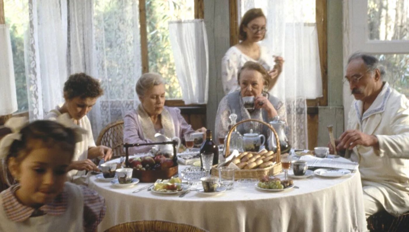 Фильм “Утомлённые солнцем”, вышедший на экраны в 1994 году, стал первым российским произведением, удостоенным одновременно премии “Оскар” и Гран-при Каннского кинофестиваля, что представляет собой уникальный случай в истории отечественного кинематографа. Название картины отсылает к популярному танго “Утомлённое солнце”, существовавшему в 1930-е годы, и в то же время ненавязчиво связано с названием знаменитой эпопеи “Унесённые ветром”.