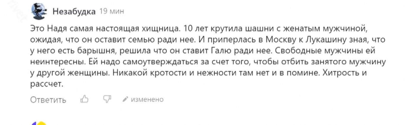 И вот на основании этих слов некоторые читательницы сделали вывод, что Надя 10 лет пыталась разбить чужую семью.