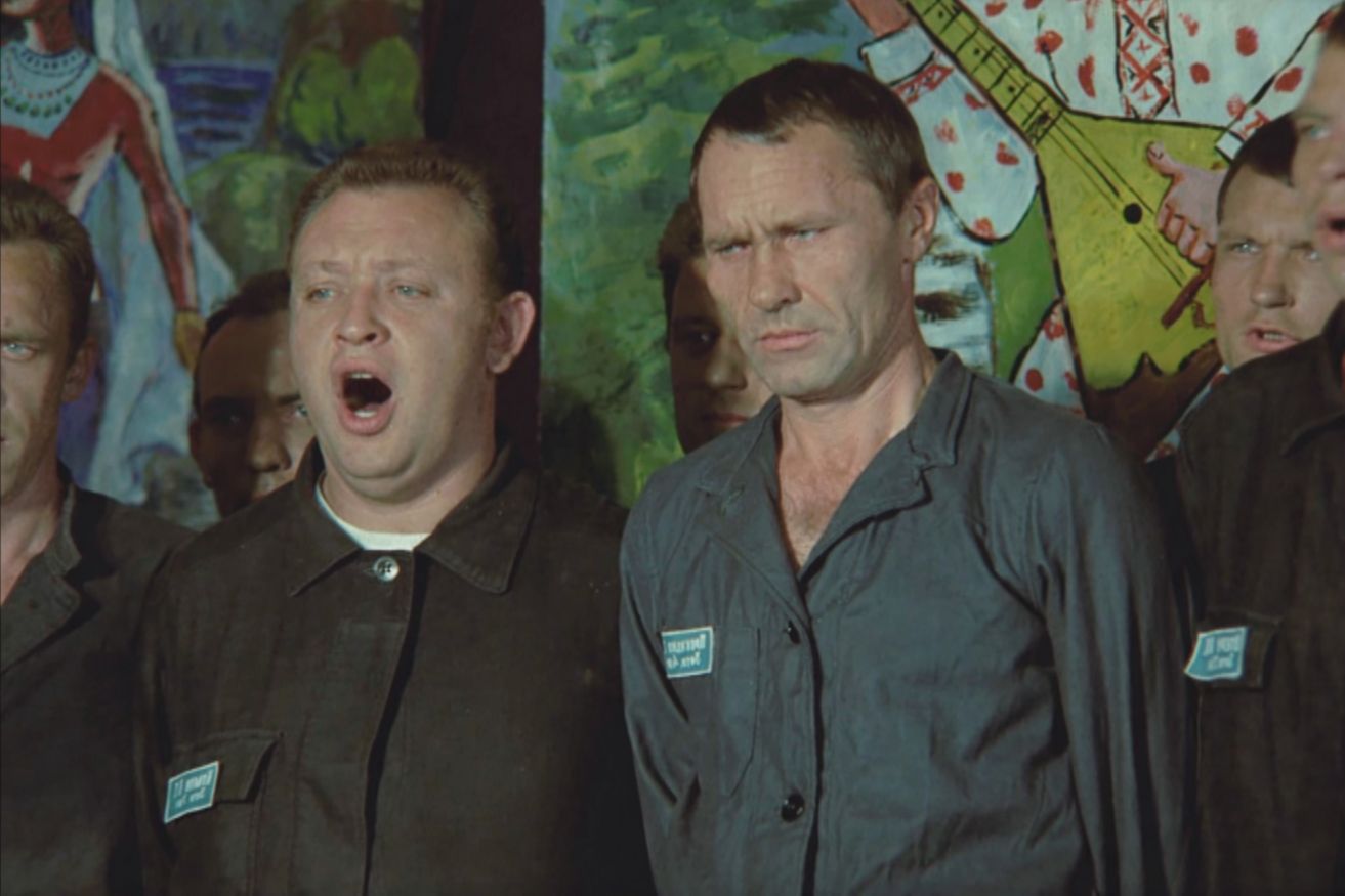 Фильм начинается в тюремном клубе. На фоне казенных плакатов заключенные поют «Вечерний звон». Камера Анатолия Заболоцкого медленно обходит их лица: стриженые головы, задумчивые взгляды, тихое выражение забвения. Песня уносит этих людей за стены, на волю, к березам и полям.