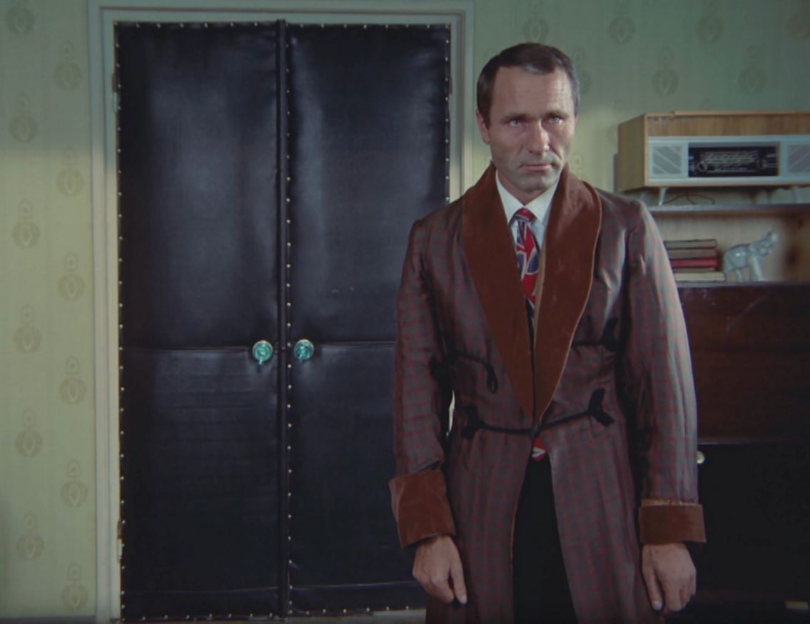 Та же репродукция висит на стене в комнате, где Егор позже будет красоваться в парчовом халате перед «народом для разврата». Картина у него за спиной, он ее не видит. Мы видим. И понимаем: разврат обречен.