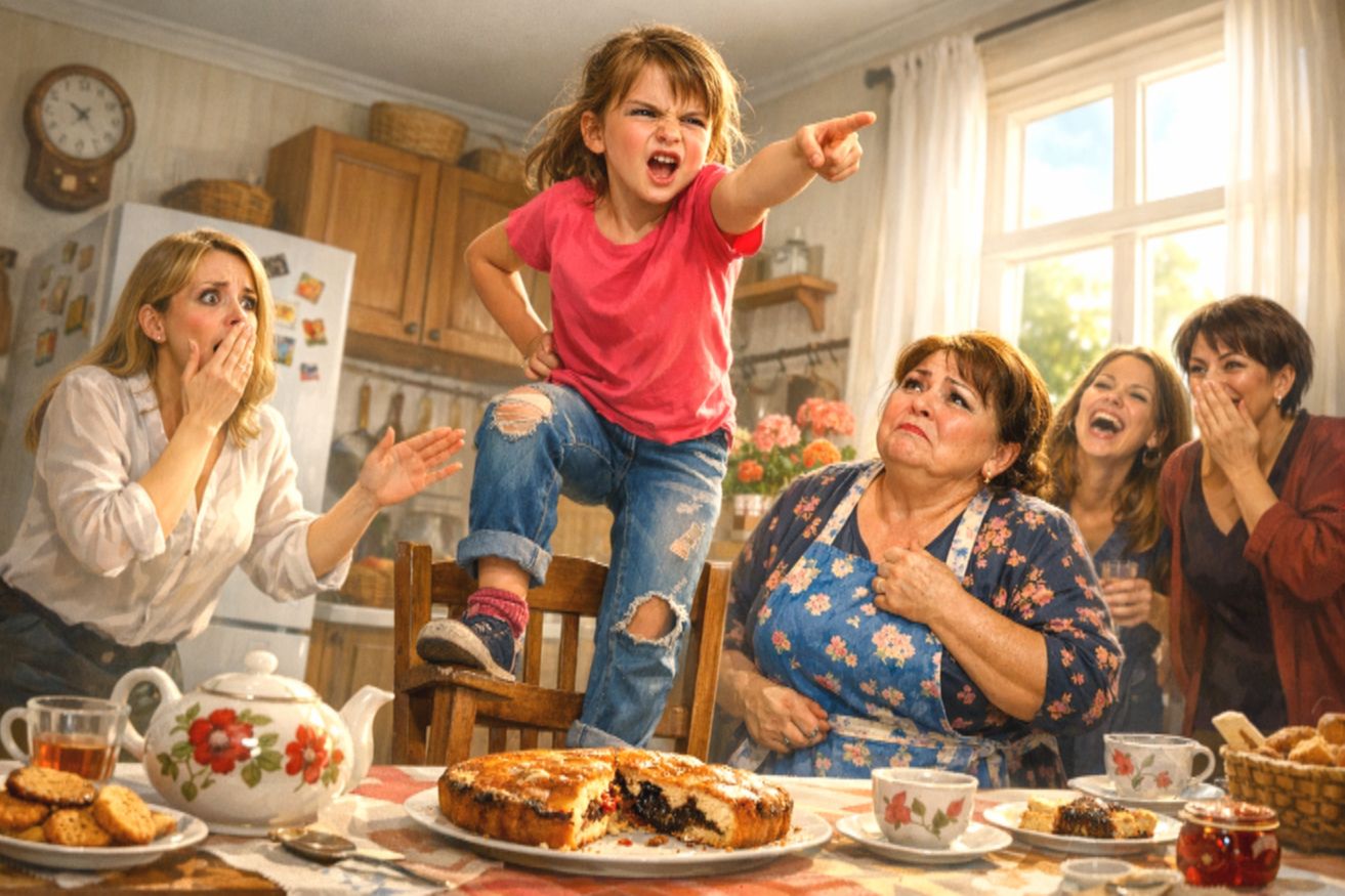 — Не сделала? Тётя Света пекла этот пирог всю ночь! Выкладывалась! А ты при всех людях заявляешь: «Фу, это похоже на пережжённую подошву!» Ты представляешь, как ей было обидно?